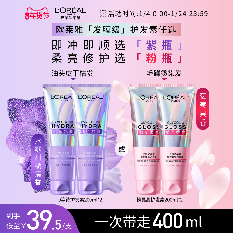 【新年从头顺】欧莱雅粉晶晶洗发水洗护套装柔顺改善干枯毛躁修护