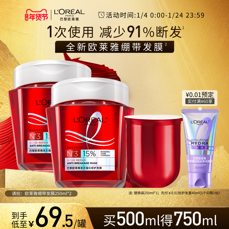 【新年从头顺】欧莱雅黄金发膜精油柔顺顺滑改善毛躁修护发丝受损