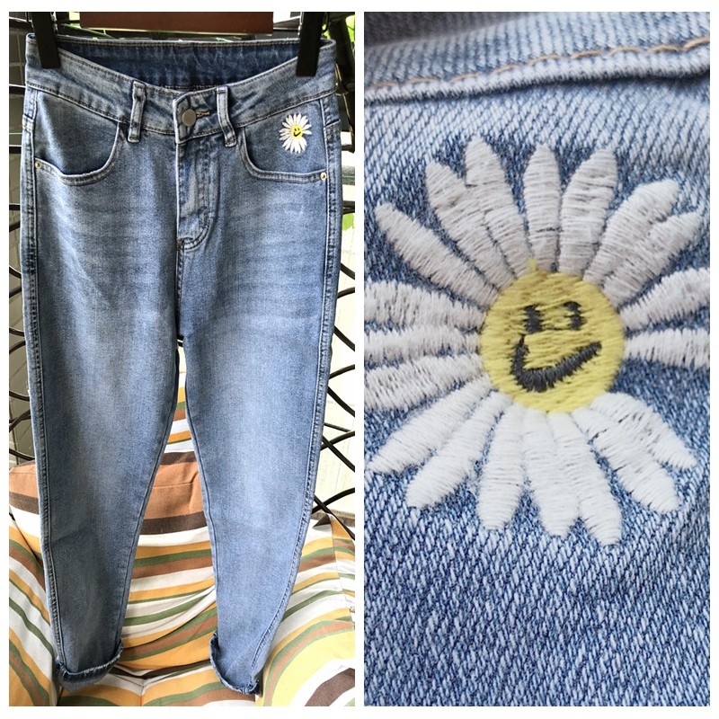 九分牛仔裤女宽松2020新款百搭韩版雏菊老爹裤女高腰显瘦bf哈伦裤