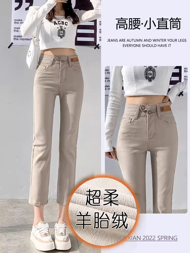 - 冬加绒牛仔裤女裤