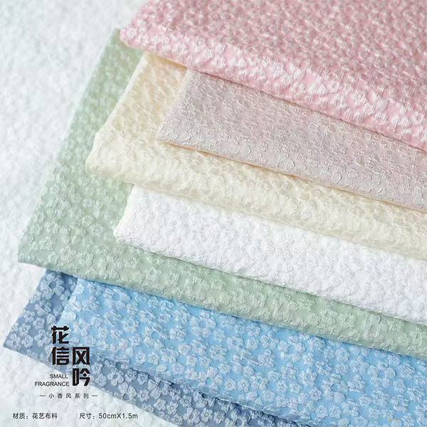 简约浮雕立体感微弹泡泡小碎花提花面料傣族泰国连衣裙蓬蓬裙布料