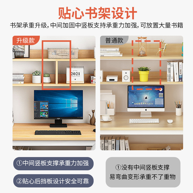电脑台式桌卧室简约一体桌子双人家用书桌书架组合学生学习写字台