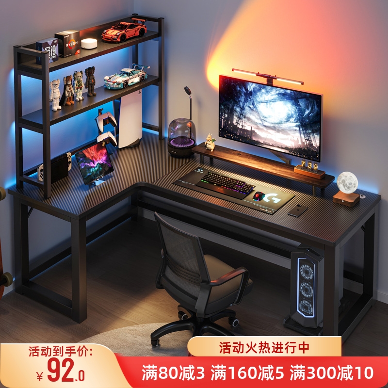 转角电竞桌电脑桌卧室拐角式家用书桌书架组合L型办公桌子工作台