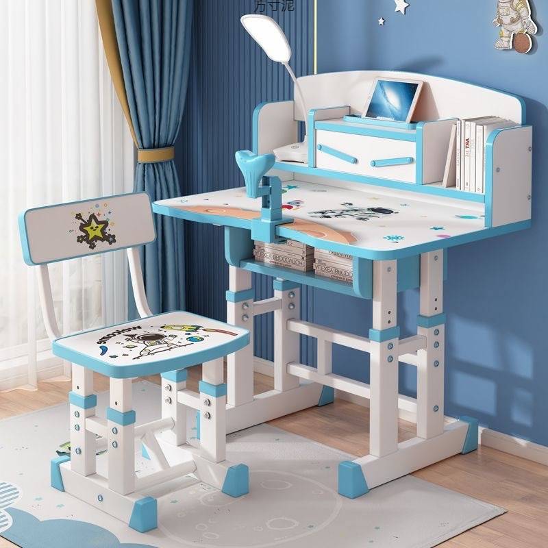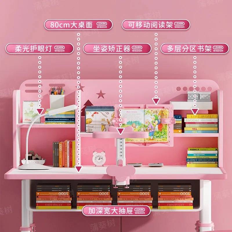 儿童学习桌椅套装学生作业写字桌家用书桌书架组合一体可升降课桌