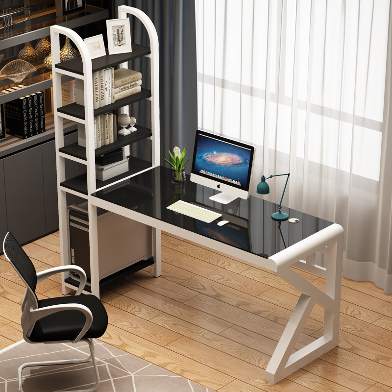 台式电脑桌现代简约家用书桌书架组合钢化玻璃电脑桌子学生学习桌