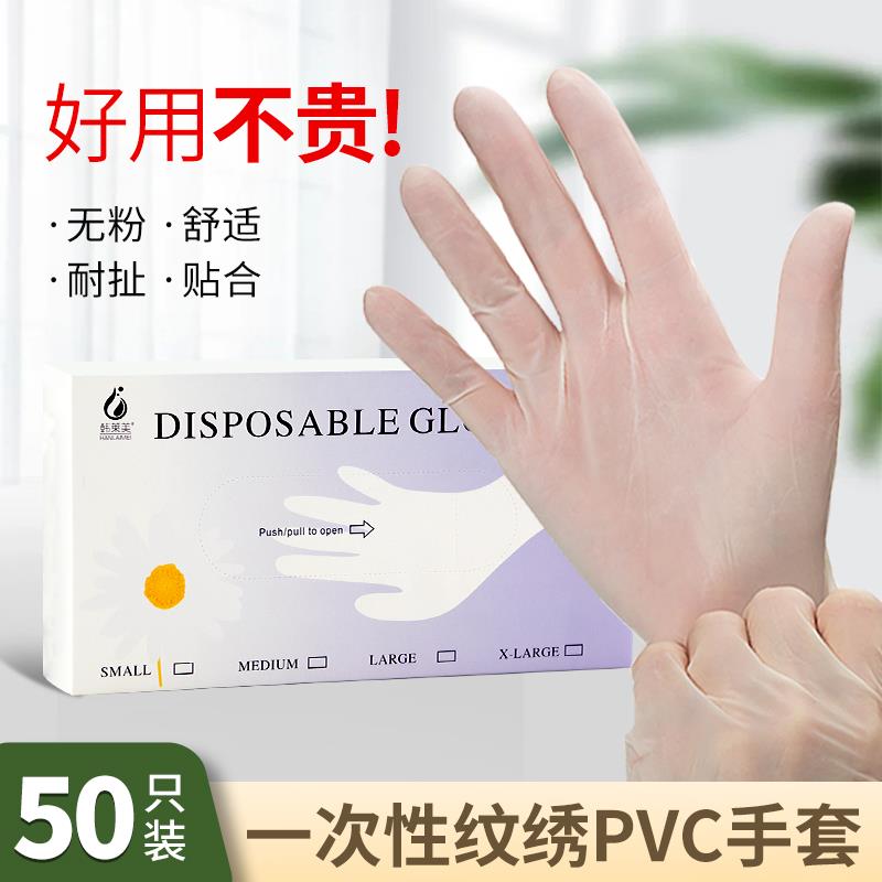韩莱美一次性PVC手套食品级家用美容纹绣手套美甲护肤透明耐用级
