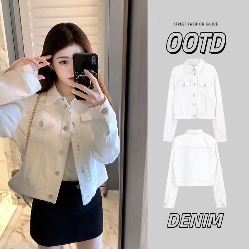 白色牛仔外套女2025新款今年流行爆款小个子夹克早秋漂亮短款上衣