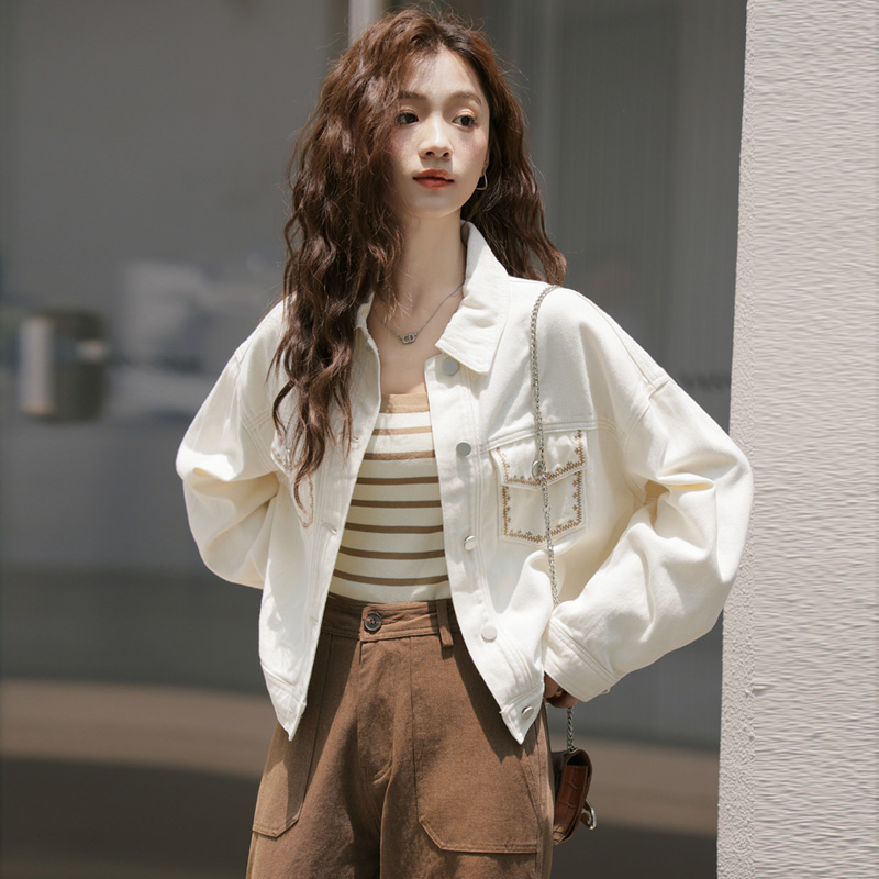 白色牛仔外套女装宽松春秋韩版休闲百搭2023短款上衣长袖夹克褂子