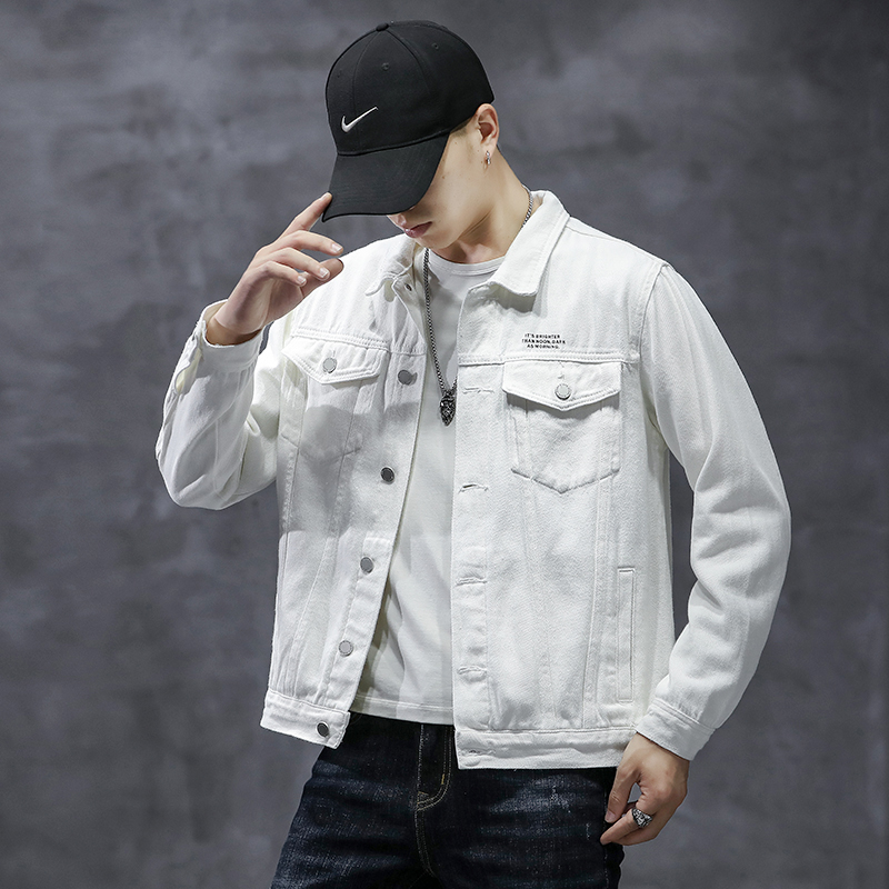 白色牛仔外套男士潮牌修身夹克潮流韩版帅气学生牛仔衣服秋冬季褂