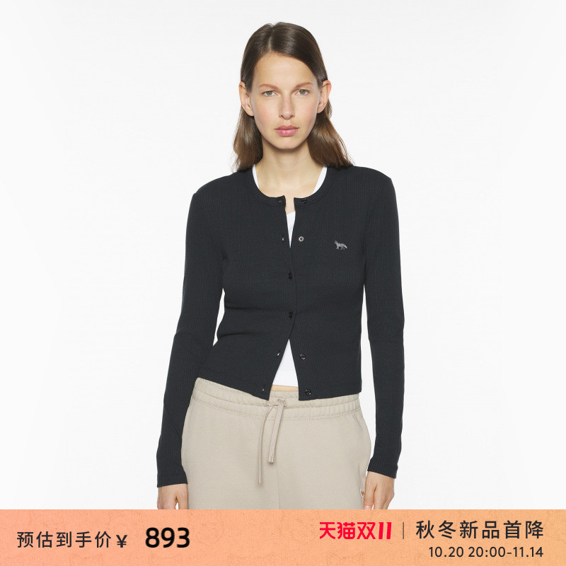 【新品首降】Maison Kitsune女款玩色小狐狸刺绣贴片圆领针织开衫