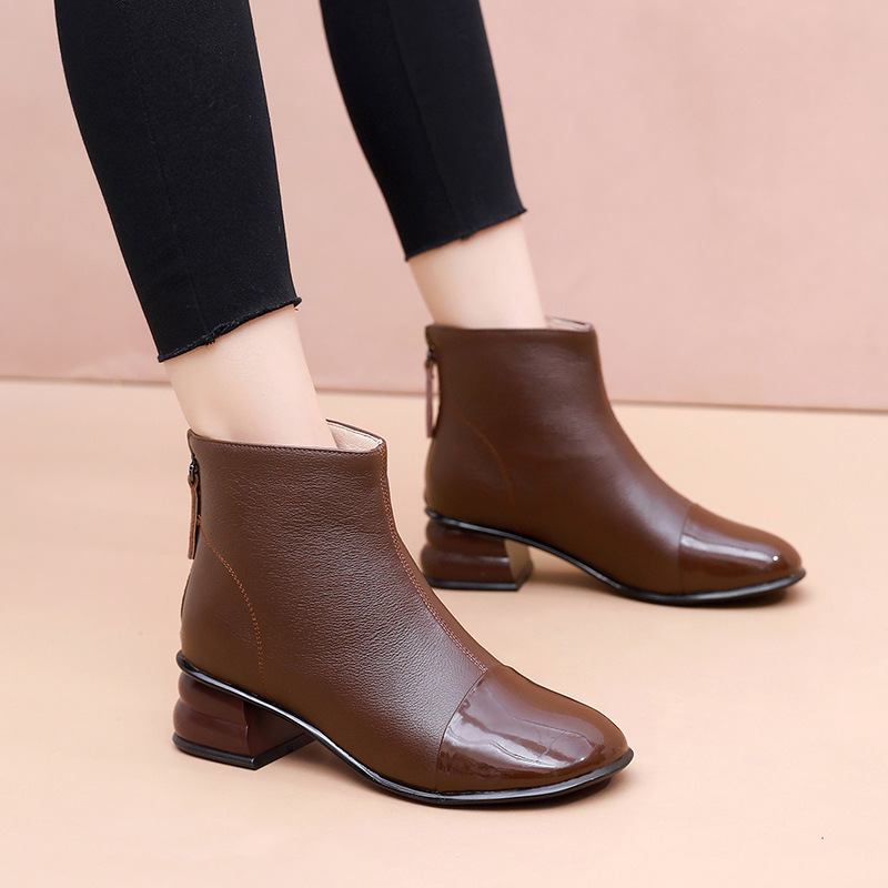 5cm粗跟短靴女秋冬时尚方头粗跟短筒瘦瘦靴百搭中跟女靴子小码33