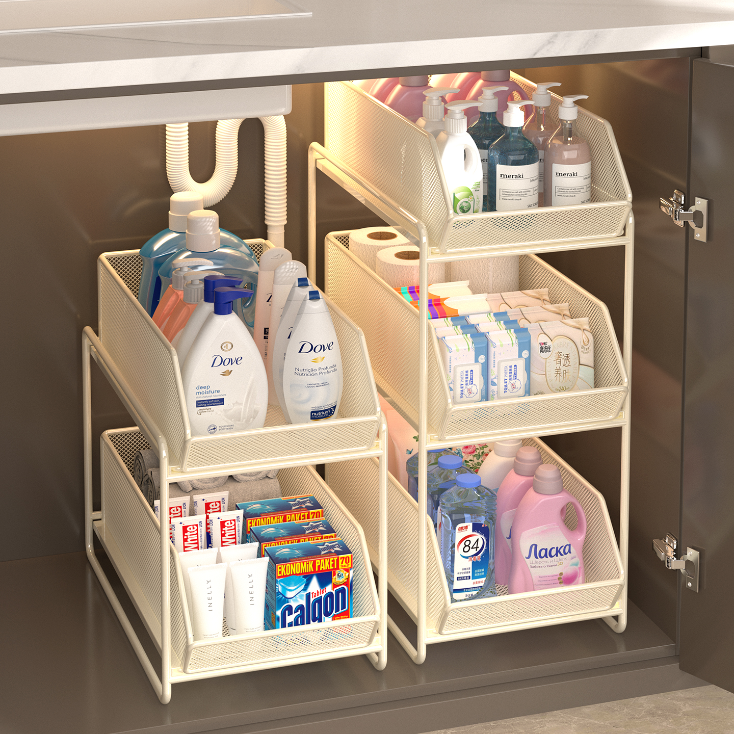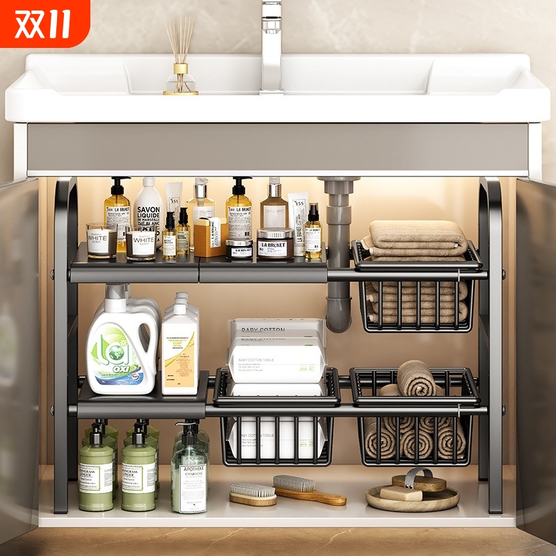 下水槽置物架抽拉式卫生间洗手台下沐浴用品收纳架浴室柜子分层架