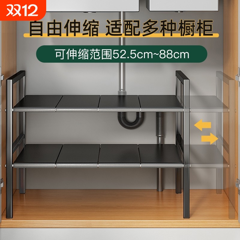 厨房下水槽置物架橱柜内分层架家用多功能可伸缩用品大全收纳架子