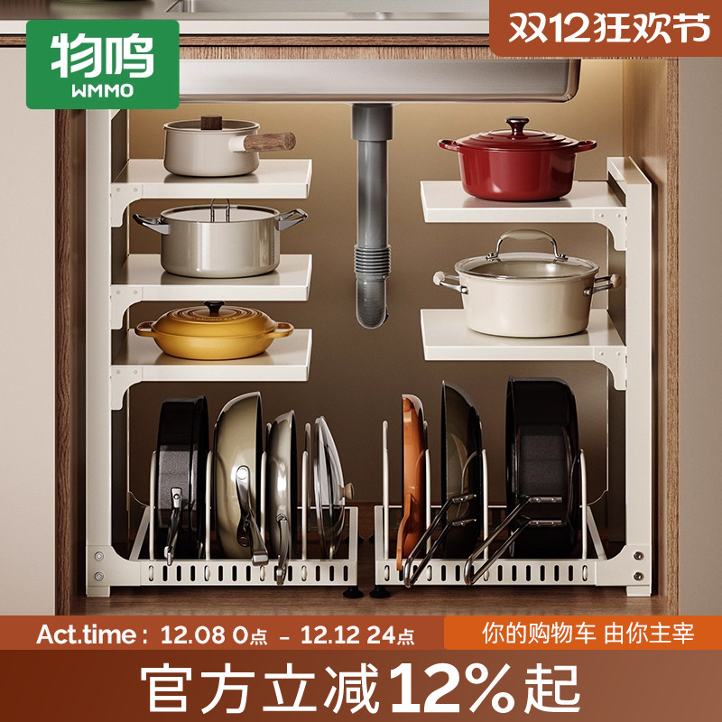 物鸣新款橱柜锅具收纳架锅架厨房置物架家用多功能下水槽下收纳架