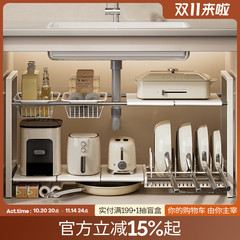 厨房可伸缩下水槽置物架橱柜内分层架厨柜储物多功能锅架收纳架子