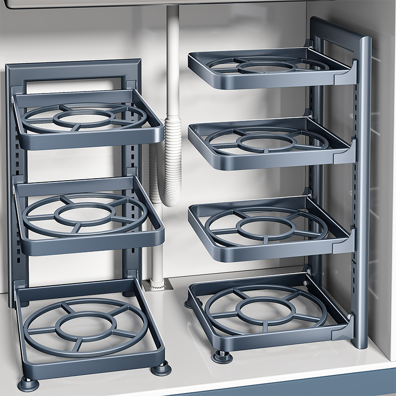 厨房下水槽置物架家用多层多功能锅具收纳架灶台橱柜可调节放锅架