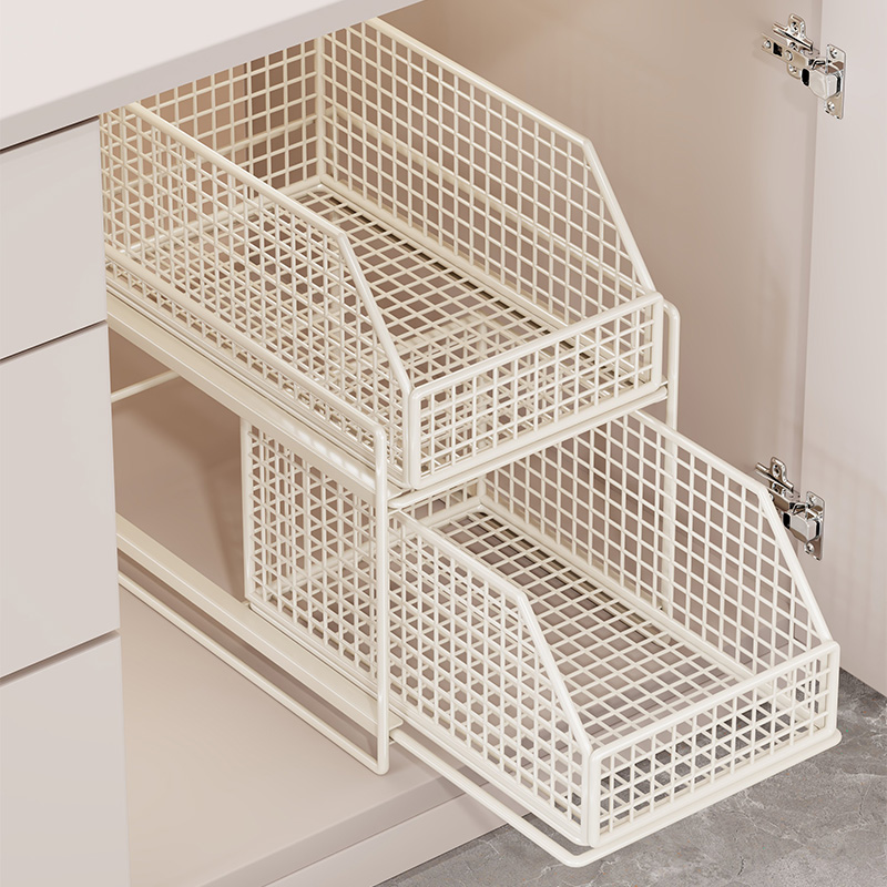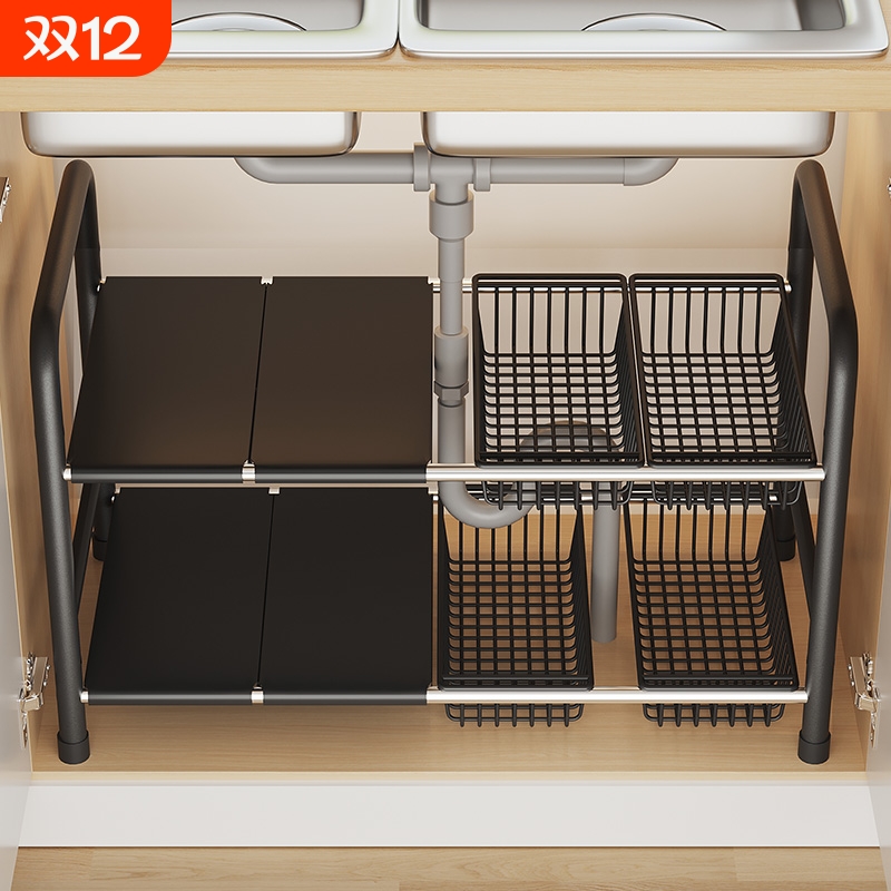 下水槽置物架浴室洗手台柜下双层抽拉式分层架橱柜多功能收纳拉篮