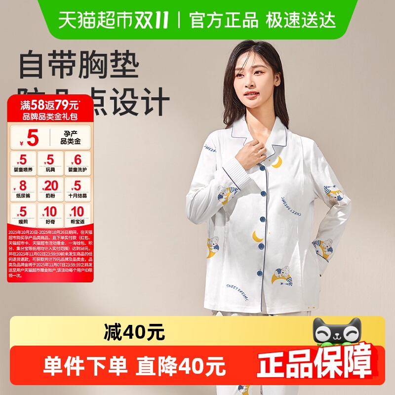 十月结晶星月梦语月子服带胸垫产后纯棉孕妇睡衣怀孕期哺乳初春季