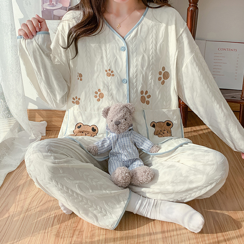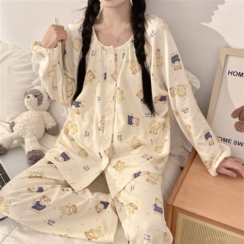 芬腾可安月子服纯棉秋春季带胸垫产后哺乳熊孕妇睡衣女款2025新款