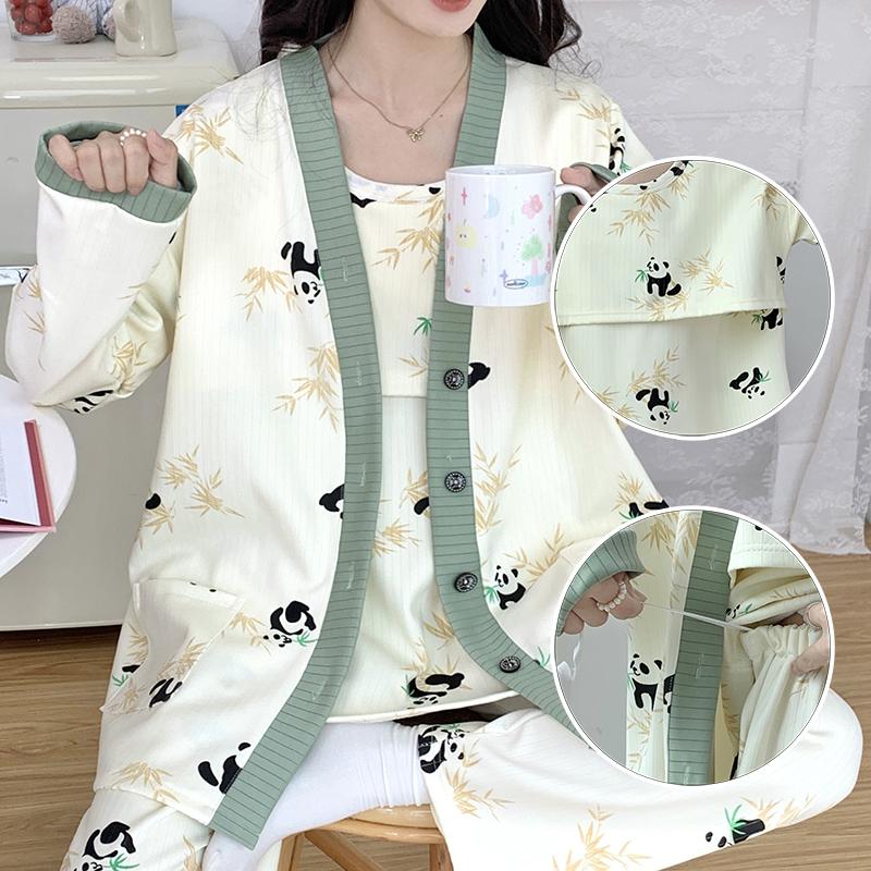 月子服春季产后10月份春秋纯棉产妇喂奶哺乳睡衣孕妇家居服套装