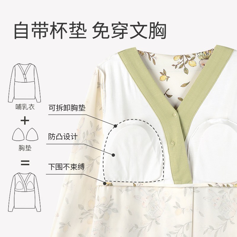 春季月子服带胸垫可拆卸r哺乳喂奶怀孕期待产纯棉孕妇睡衣产检出