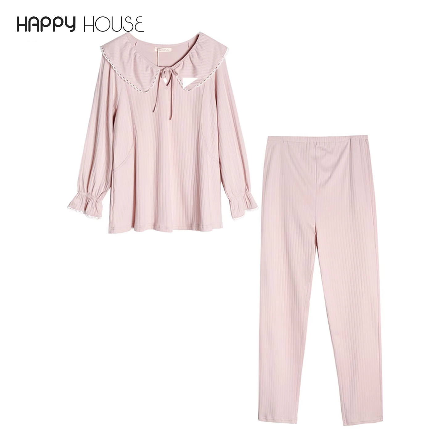 快乐屋孕妇甜美翻领抽条针织可哺乳家居服套装月子服春季款3月份