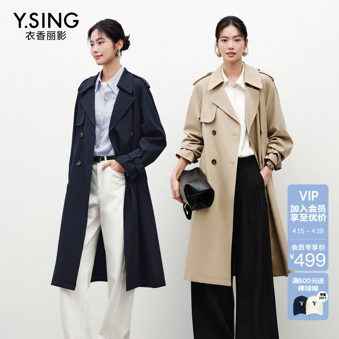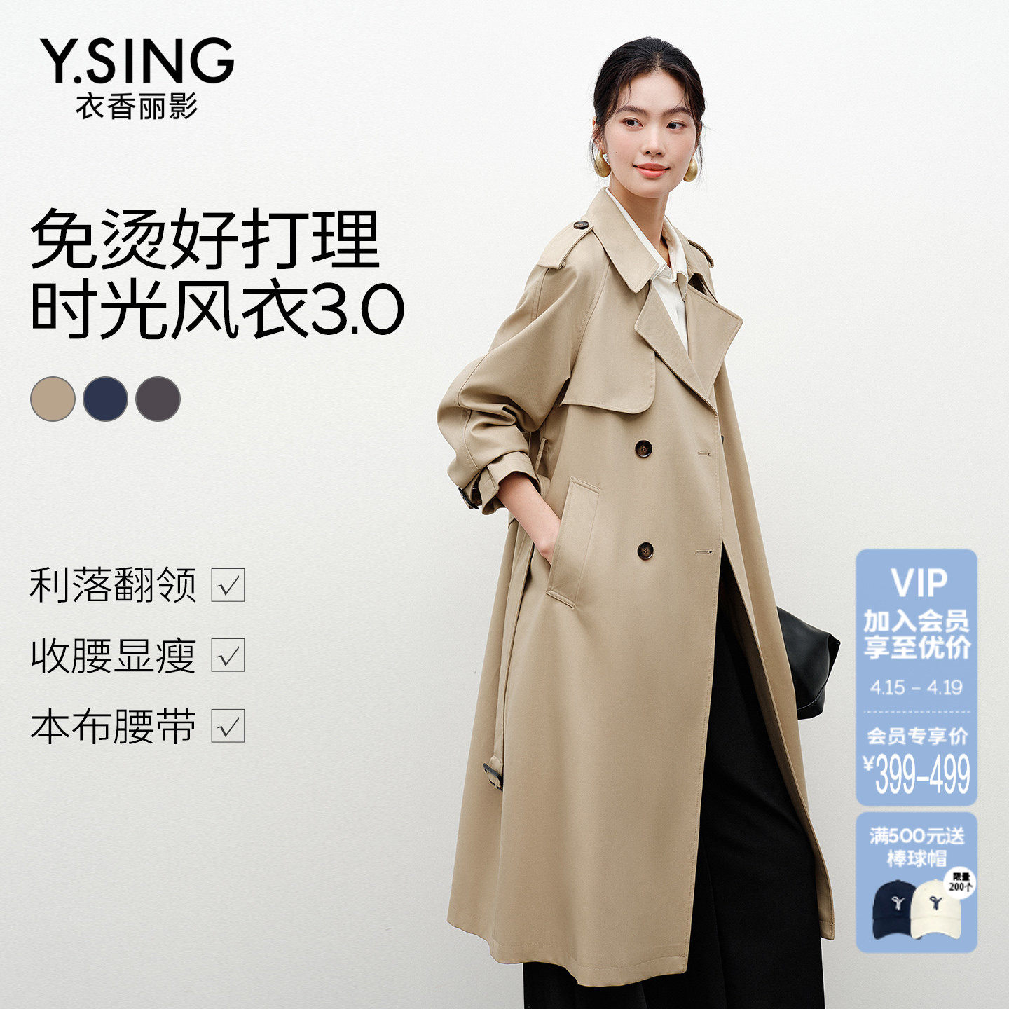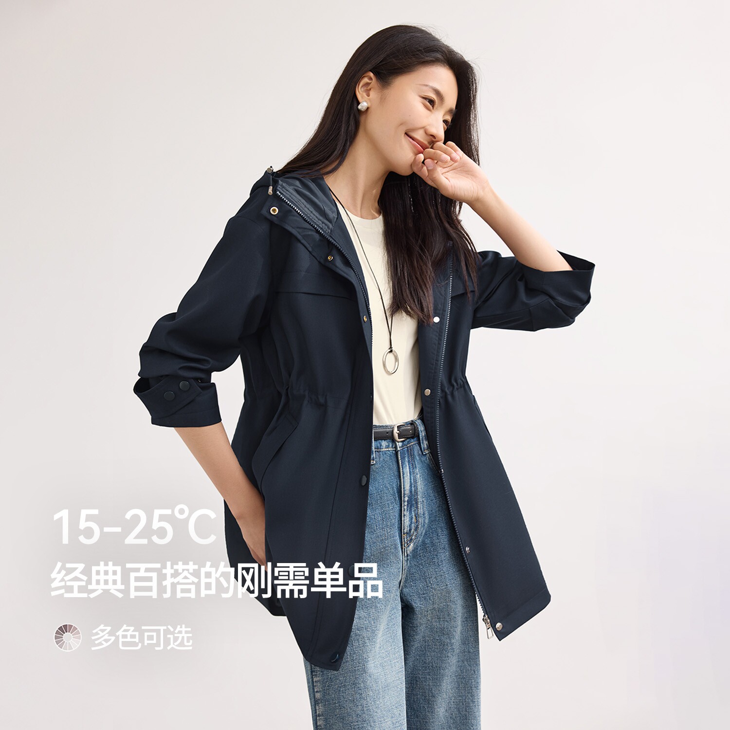 YBAI/亦白 2026春季新款英伦风气质百搭抽绳显瘦中长款风衣外套女
