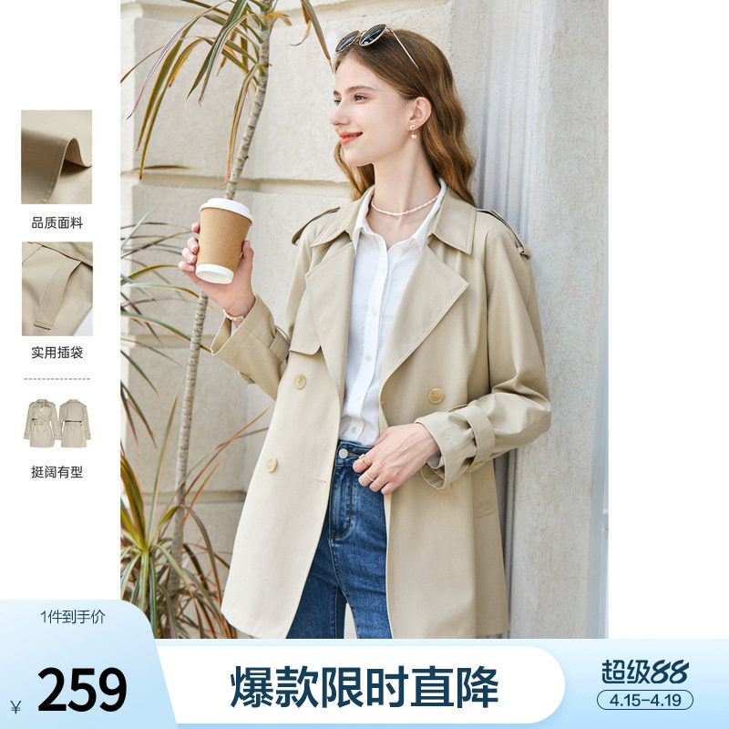 popchrio◆341经典风衣 垂坠感英伦风小个子休闲短外套中长款女春