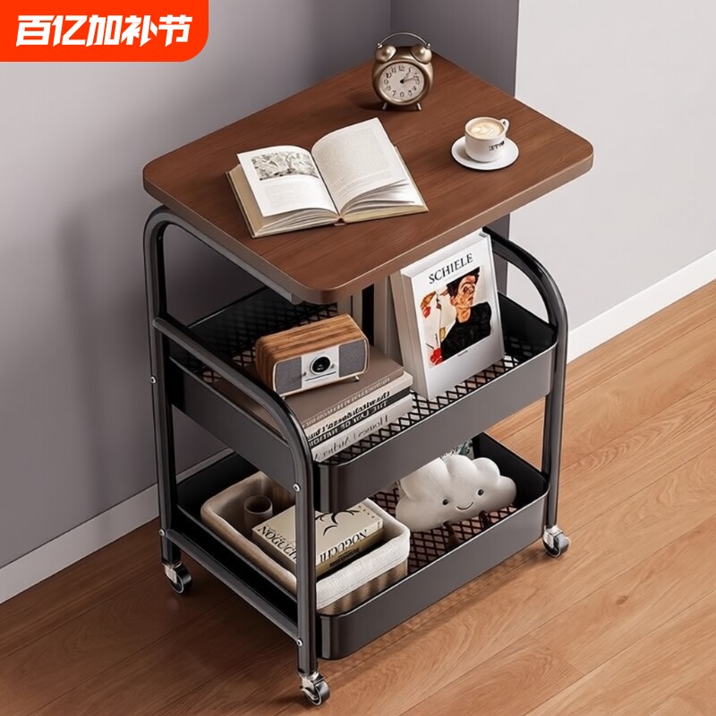 3层带轮小推车储物置物架客厅落地移动零食收纳架多层储物架厨房