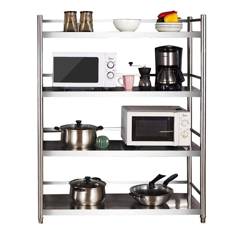 厨房置物架4层不锈钢微波炉架子落地多层蔬菜锅架碗架收纳储物架3