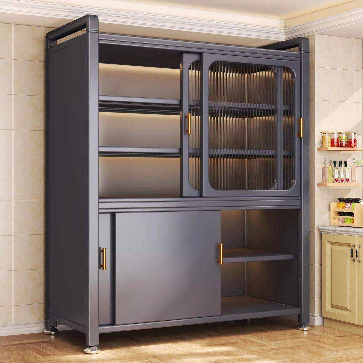 厨房置物架家用锅碗收纳柜多层落地储物餐边柜防尘推拉门橱柜碗柜
