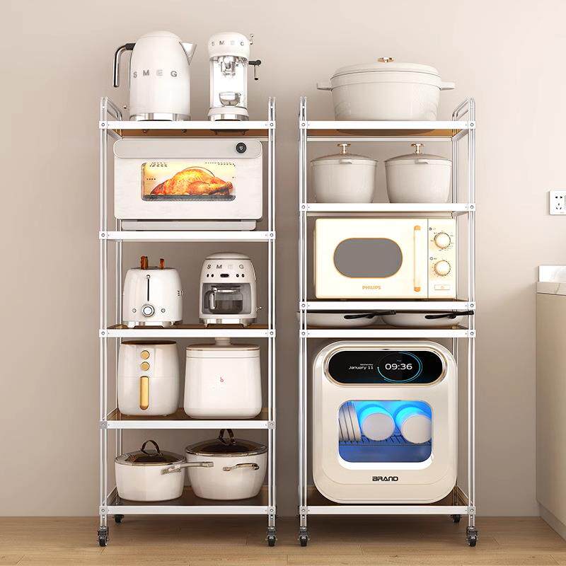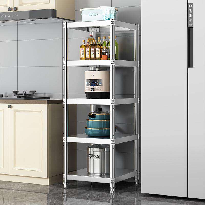 不锈钢厨房置物架落地多层微波炉烤箱收纳架家用多功能锅具储物架