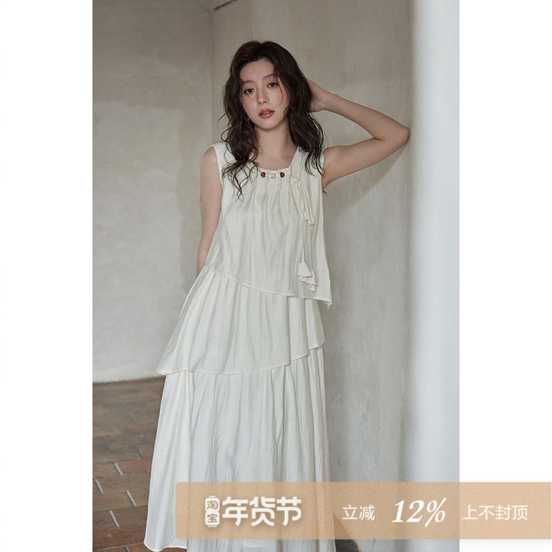 JIAHUI STUDIO 夏季纯色无袖圆领法式连衣裙显瘦休闲高级百搭长裙