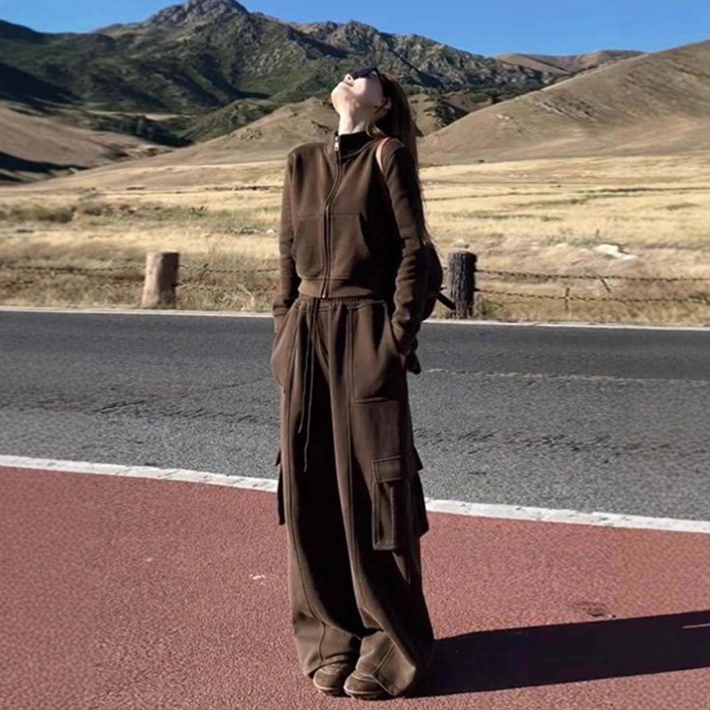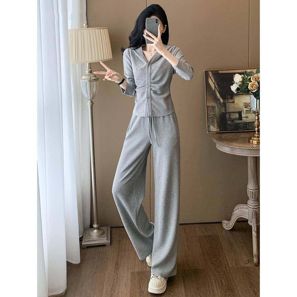 - 阔腿裤套装秋装两件套