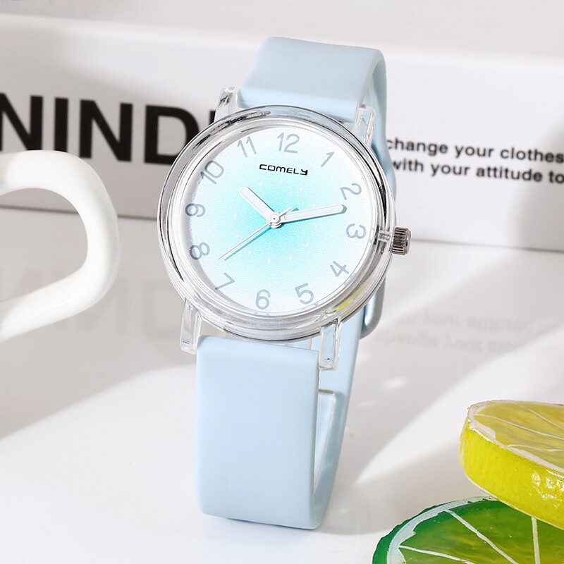 聚利时新款数字静音表马卡龙果冻手表防水石英中性学生表时尚夜光