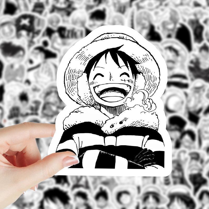 300张海贼王黑白漫画贴纸航海onepiece路飞索隆行李箱贴画笔记本电脑动漫拉杆箱ipad装饰小粘贴手帐男生