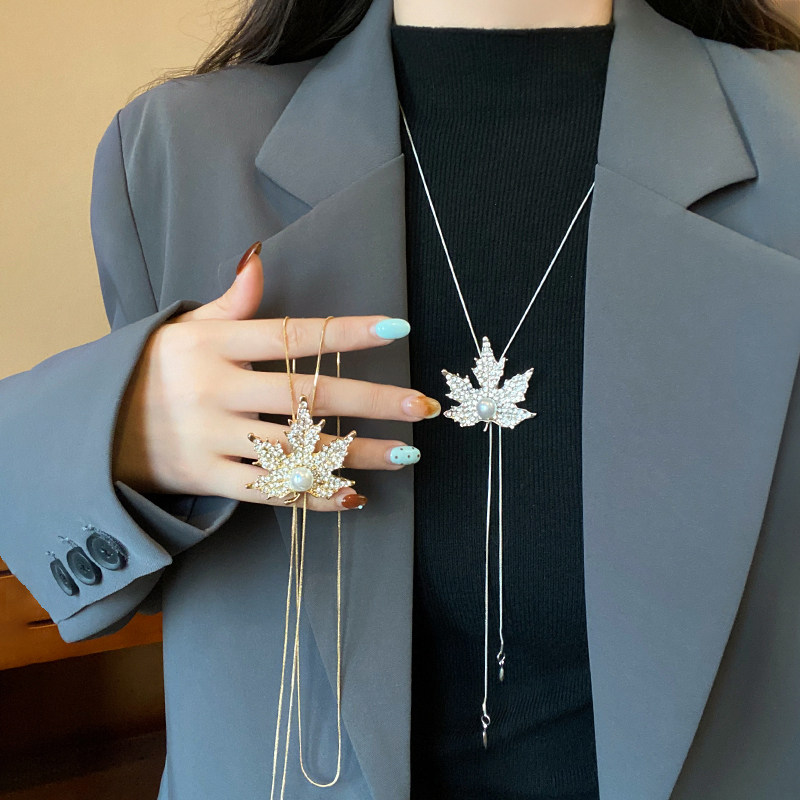 秋冬枫叶毛衣链女长款时尚日常百搭项链配饰个性衣服挂饰卫衣链女