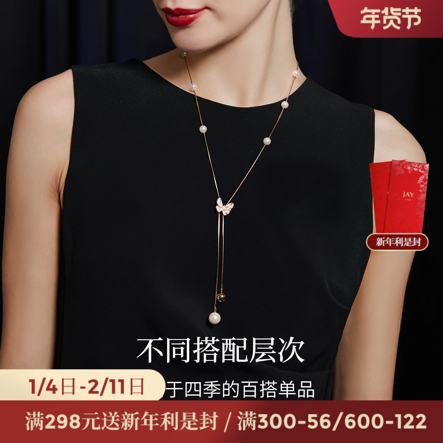 JAY白贝蝴蝶秋冬毛衣链轻奢高级感挂饰长款毛衣项链吊坠衣服挂绳