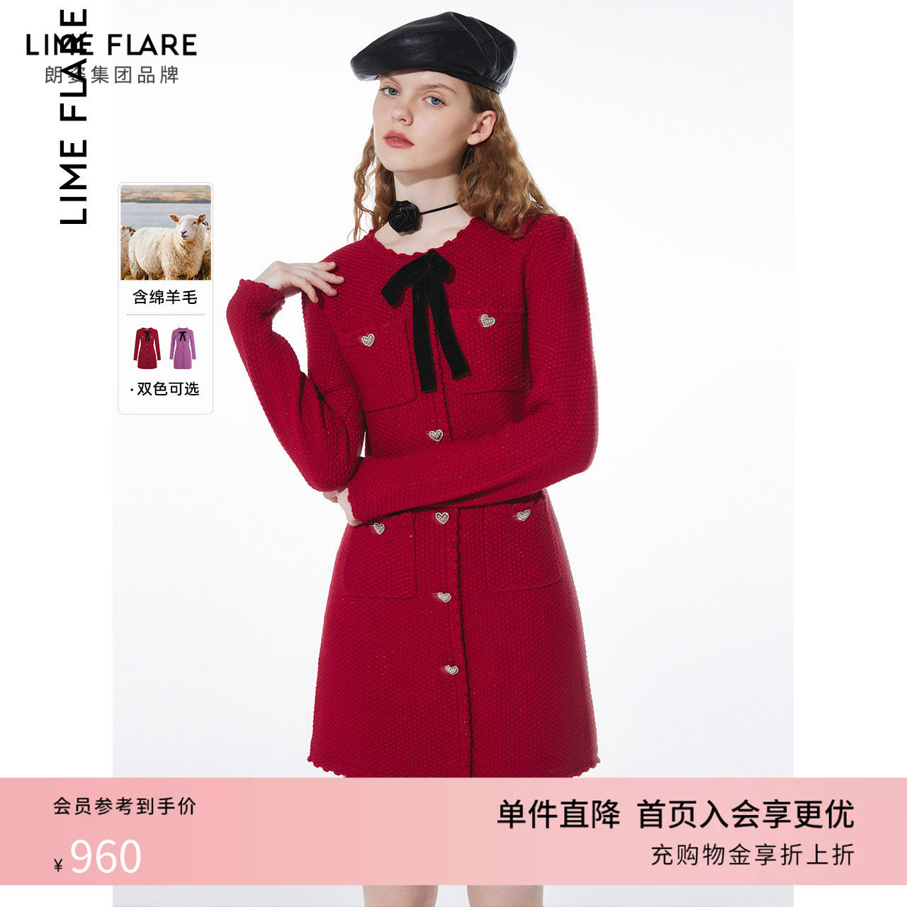 花序|早春何衣见友红色玫瑰连衣裙长袖针织日常大码敬酒订婚礼服