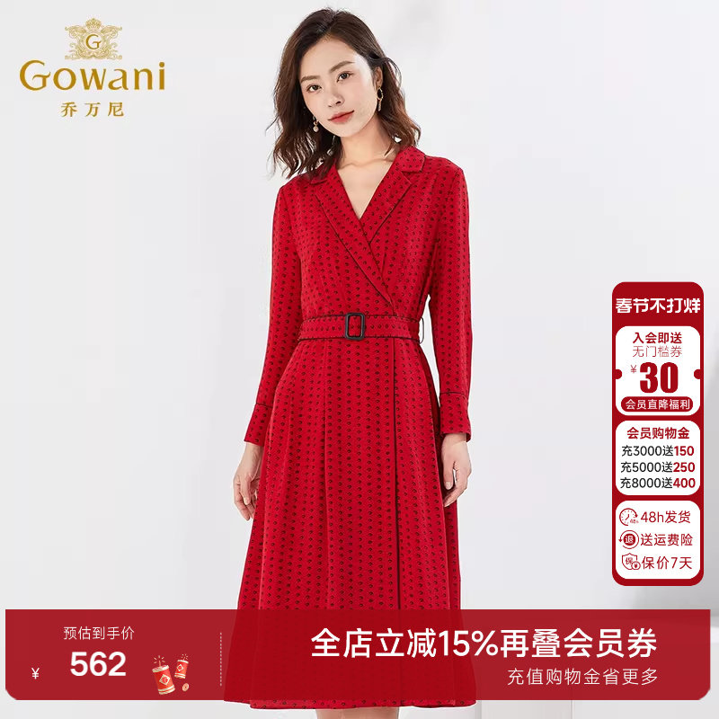 乔万尼红色长袖收腰连衣裙秋装商场同款长裙气质中长款EI3E123