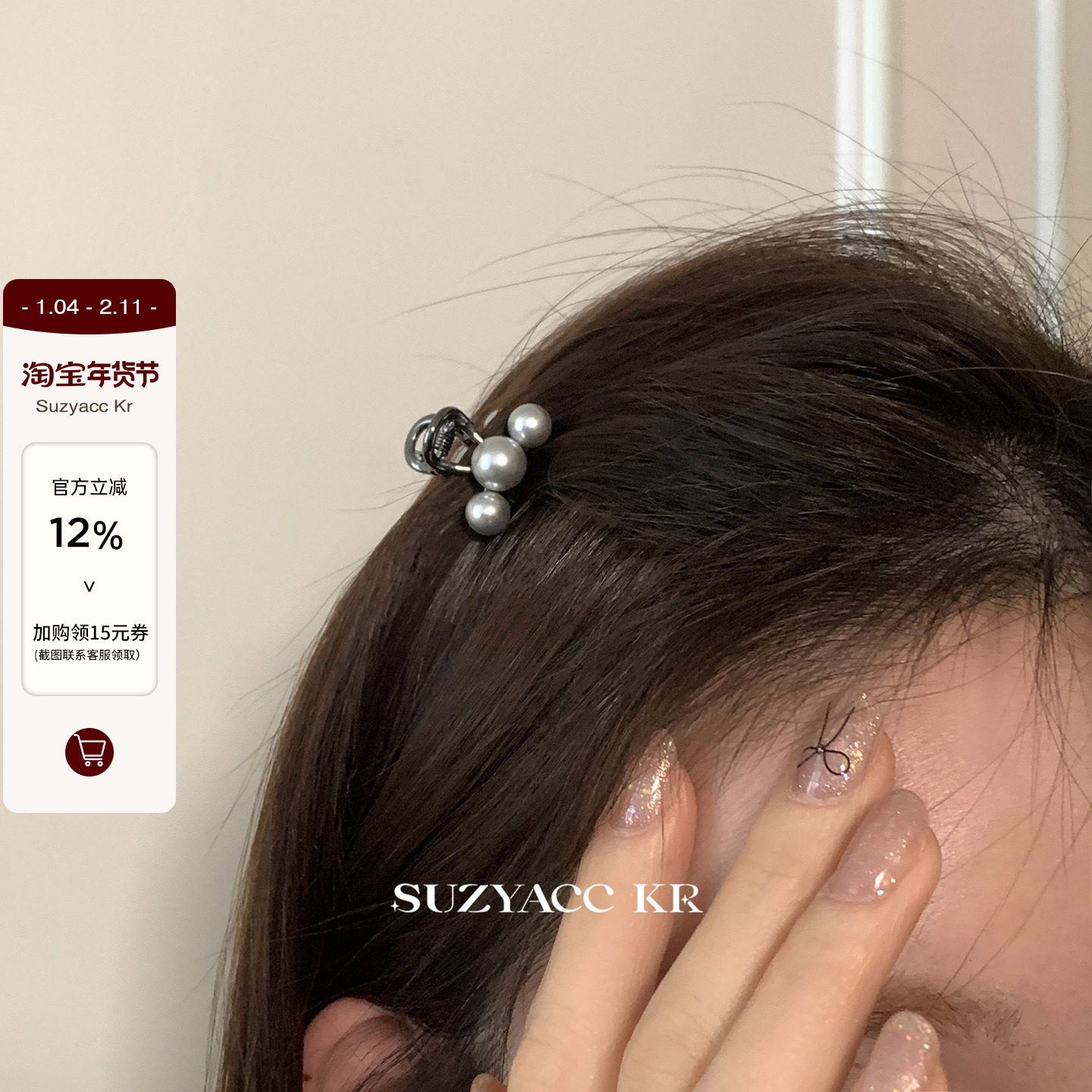 suzyacc kr百搭轻奢仿珍珠刘海小抓夹女2024新款气质高级感侧边夹