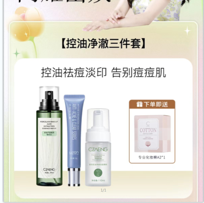 瓷妆控油净澈三件套去痘印去黑头粉刺白头去油清爽美皙泉祛痘套装