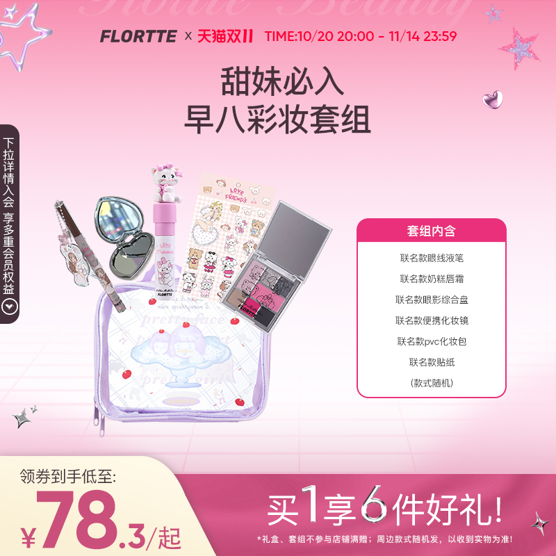 【彩妆礼盒】FLORTTE/花洛莉亚mikko联名奶糕眼影盘彩妆生日礼
