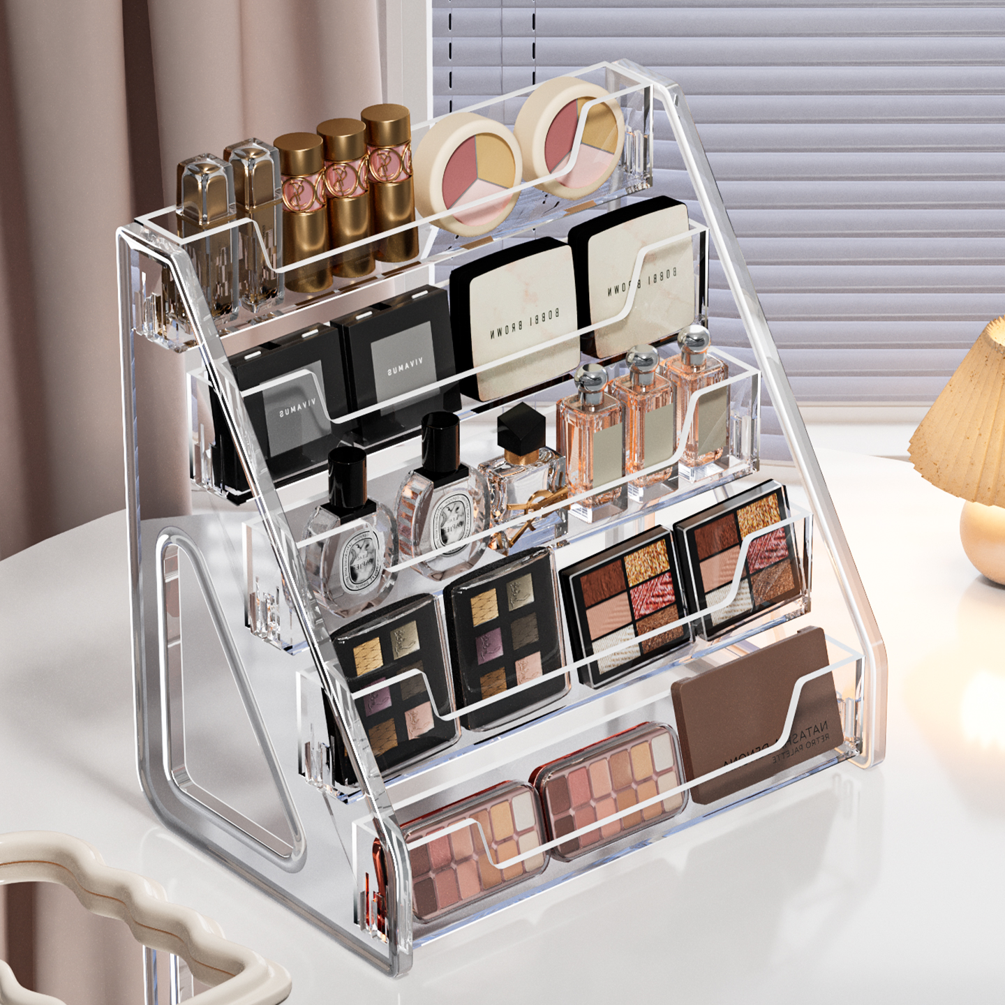 阶梯式化妆品置物架桌面透明眼影盘收纳盒梳妆台彩妆口红展示架子