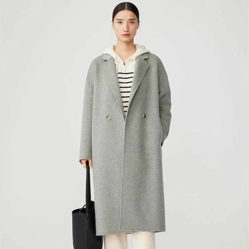 黑色双面羊绒外套女2025秋冬极简风经典长款西装羊毛毛呢正肩大衣