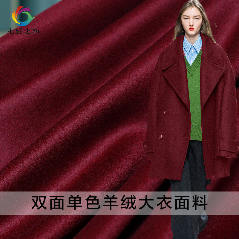 七彩之韵深红色双面羊绒羊毛呢布料冬季女装羊绒大衣服装定制面料