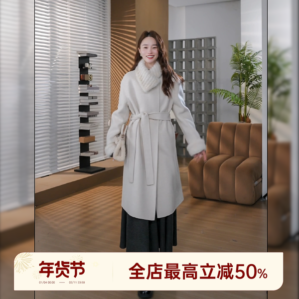 双面羊绒大衣女中长款2025秋冬新款气质翻领修身显瘦高端毛呢外套