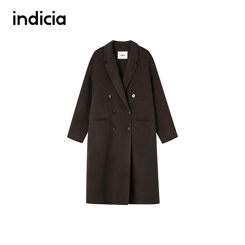 indiciaF2D4DY673C专柜正品标记女装羊绒大衣长款双排扣吊牌3989