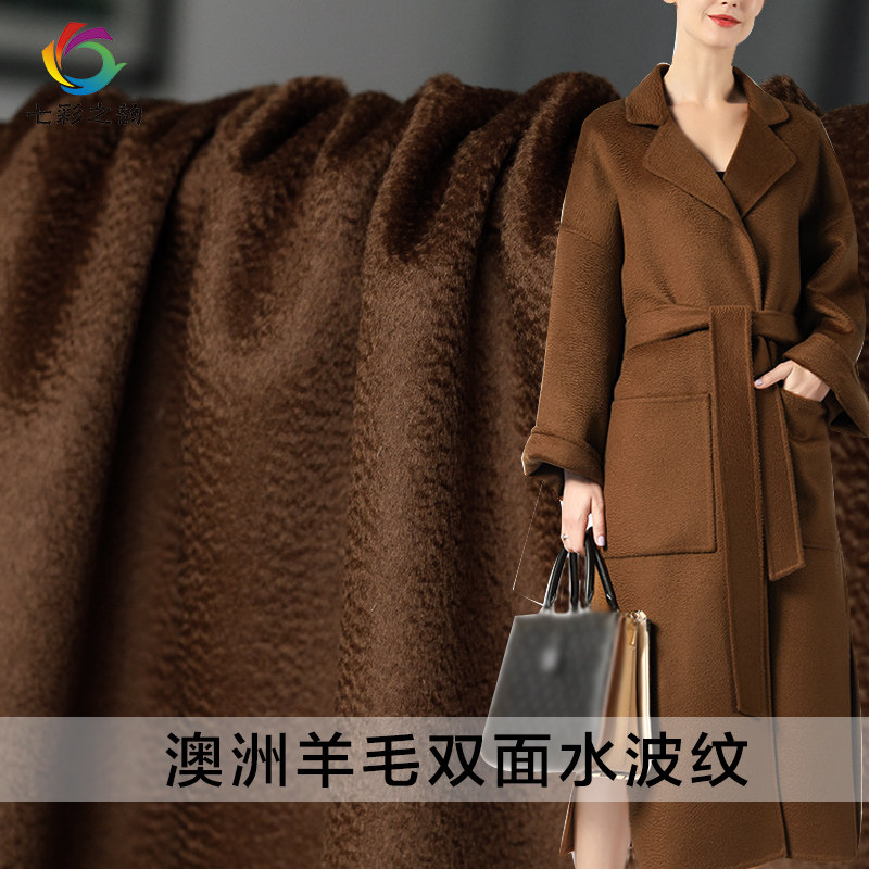 七彩之韵双面水波纹焦糖棕澳洲羊毛布料冬季女装羊绒大衣服装面料