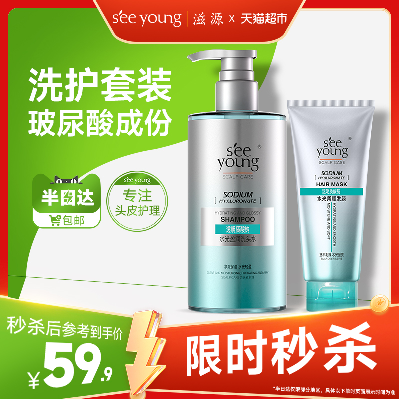 滋源玻尿酸洗护套装透明质酸钠洗发水男女士水光保湿柔顺发膜正品